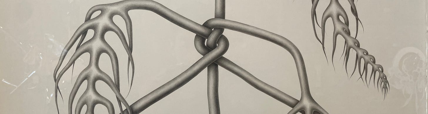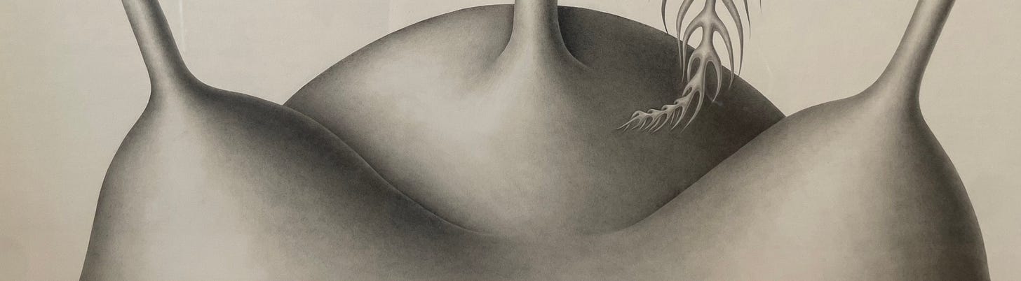cometh to the hester spot to filleth your cup with the sweet nectary brew of art and imagination, curated by lauren hirshfield with the immaculate vibes from five celestially divine artists: Devra Fox, Jackie Slanley, Kat Ryals, Lauren Walkiewicz, and Rosalie G. Smith. our surrounding world mirrors our own earthly behaviors, perpetually seeking to take, take, and take some more. whether its time, energy, light, or hope, our essence is being drawn out from the fabric of our very being and, perhaps, our only remedy is to find alternative methods to replenish our souls. pit of desire, garden of prosperity is on view at our 119 hester st location till august 30th.
